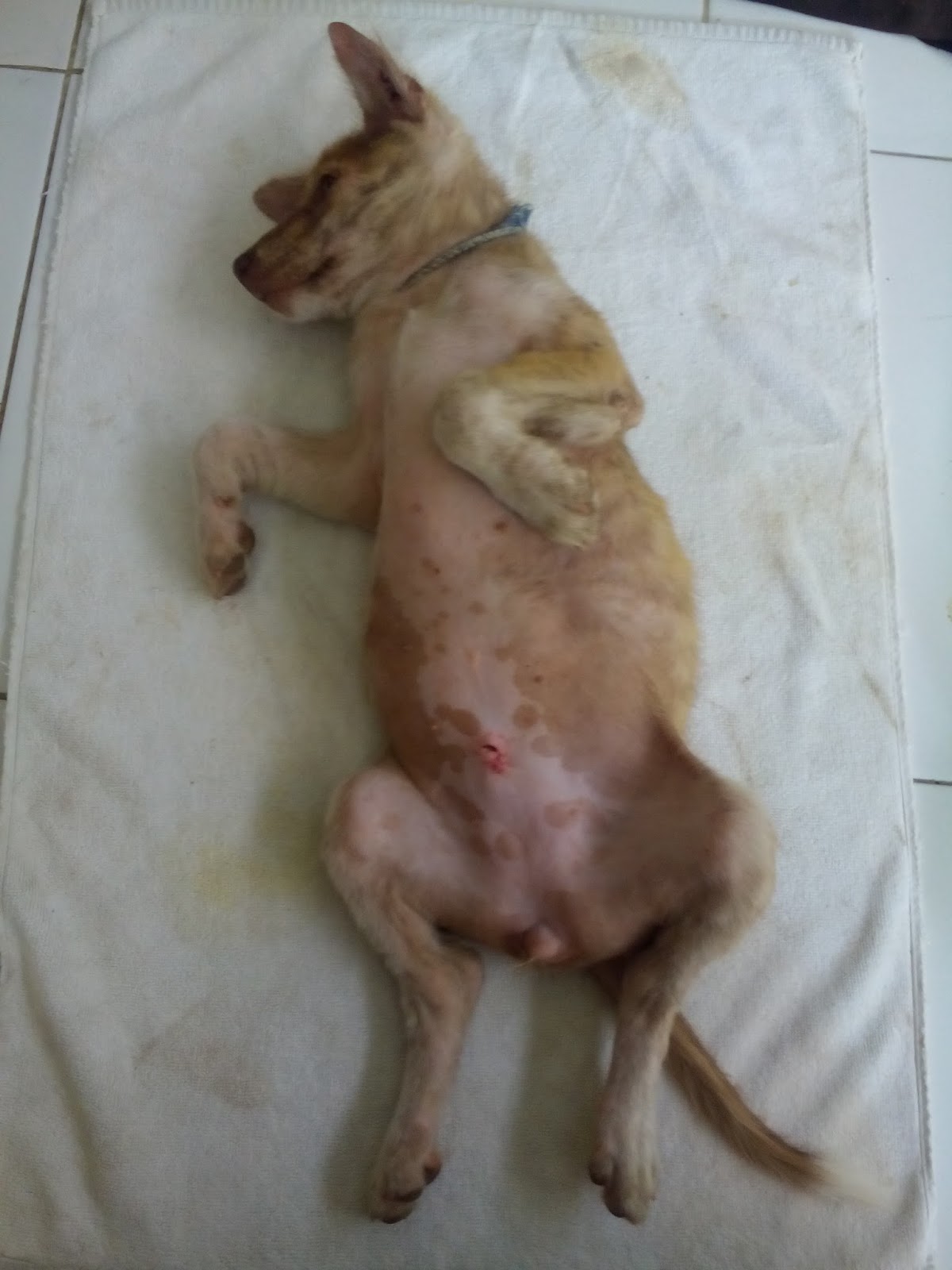The first time we met, Bonnie's body check gained more than 100 fleas and ticks. There were scabies wounds in some part of her bodies due to her constant scratching. Her belly was swollen but she's lightweight. A week later, after a visit to BARC, Ubud, her health had improved greatly. We came home with a truckload of vitamins, fish oil, deworming pills, tick & flea drops, and Bonnie also got her first vaccine and scabies shot. Her appetite is competing with me, her belly is now just chubby and healthy, and her scratching is less frequent now, and the parasites living in her has been decreasing dramatically.